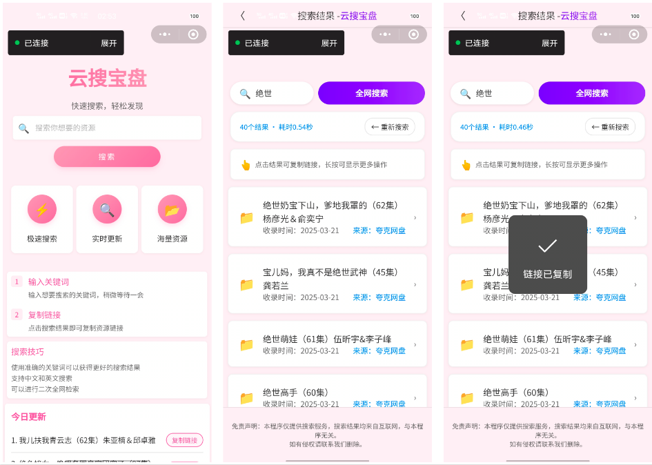 2025年3.28更新1.0.4版本,全网搜,前面加了一个本地搜,美化配色和布局,增加每日更新的前十条资源